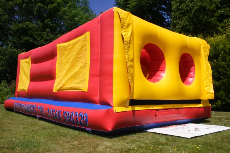 Hire this challenging obstacle course for a fantastic attraction at any event or party. Suitable for ages up to 14yrs it features two doughnut entrance holes, challenging bish-bash obstacles, a squeeze-through bish-bash slot followed by a scramble ladder to climb up to the 7ft high slide at the end. This whole unit is netted and therefore provides the best safety for your child. It has parental viewing panels along the sides so parents can see their children having fun.